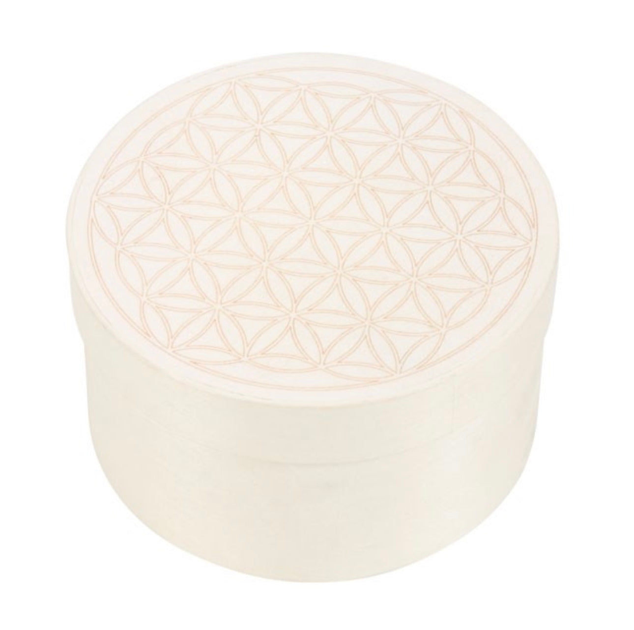 This set of chakra gemstones includes 7 tumbled crystals and a cotton drawstring bag presented in a wooden Flower of Life gift box. Used for balancing and enhancing the energies of the 7 chakras, crystals are a powerful metaphysical tool to promote inner and outer wellbeing. Tumblestones include clear quartz (crown), amethyst (third eye), lapis lazuli (throat), green aventurine (heart), yellow jade (solar plexus), carnelian (sacral) and hematite (root).